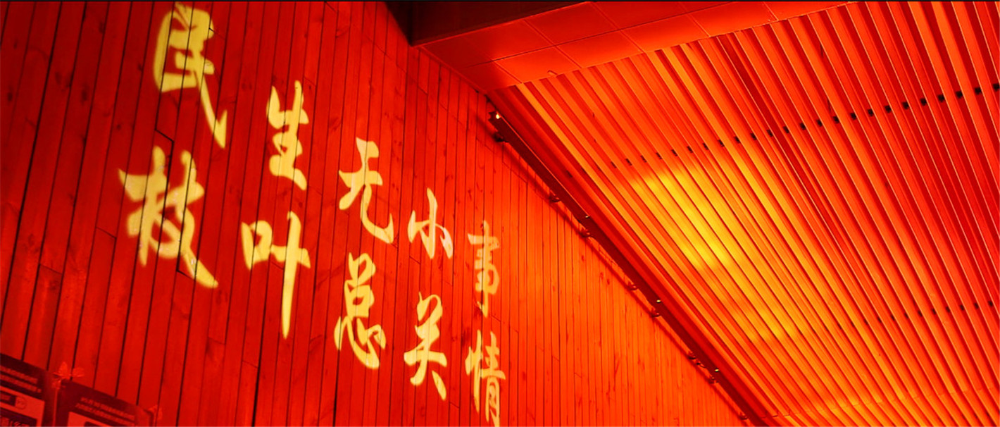 “民生無小事,枝葉總關情”主題燈光長廊是樂山網紅民生社區(qū)的重要標識的。 大紅色的全息投影象征著祖國的紅旗在“基層社區(qū)”的上空飄揚, 56顆閃亮的星光,代表56個民族。不停變換的燈光圖案, 寄托著黨和政府對老百姓小康生活的殷切關懷。 銀杏寓意幸福生活, 鯉魚寓意年年有魚, 荷花取自濟南市市花,寓意和諧美滿。溫暖飽滿的色彩, 加之“一路平安”和“歡迎回家”的祝福,讓老百姓真切體會到“家”的溫馨和“國”的偉大。