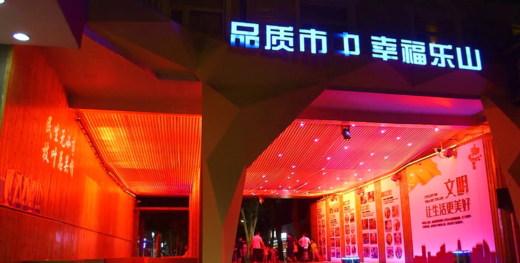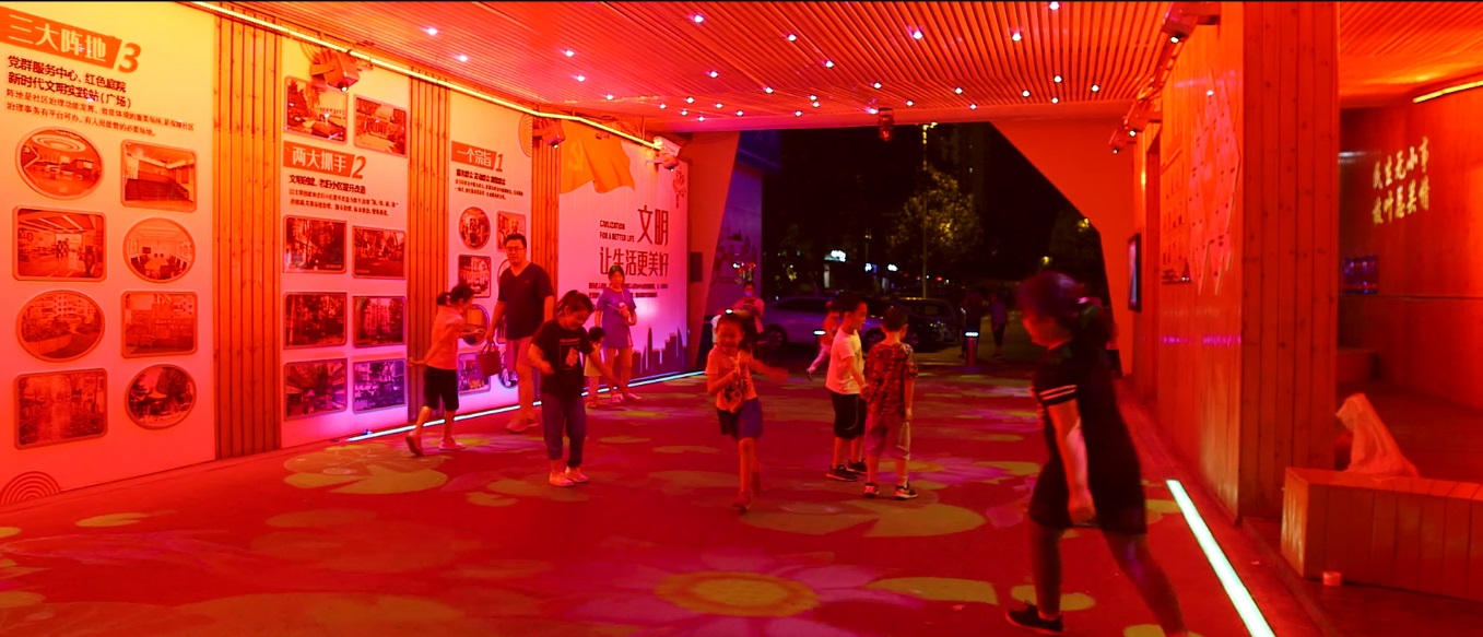 “民生無小事,枝葉總關(guān)情”主題燈光長(zhǎng)廊是樂山網(wǎng)紅民生社區(qū)的重要標(biāo)識(shí)的。 大紅色的全息投影象征著祖國(guó)的紅旗在“基層社區(qū)”的上空飄揚(yáng), 56顆閃亮的星光,代表56個(gè)民族。不停變換的燈光圖案, 寄托著黨和政府對(duì)老百姓小康生活的殷切關(guān)懷。 銀杏寓意幸福生活, 鯉魚寓意年年有魚, 荷花取自濟(jì)南市市花,寓意和諧美滿。溫暖飽滿的色彩, 加之“一路平安”和“歡迎回家”的祝福,讓老百姓真切體會(huì)到“家”的溫馨和“國(guó)”的偉大。